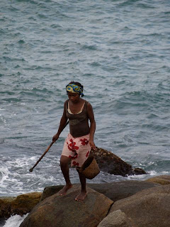 La pointe. Gros rochers de granit, arbres du voyageur, orchidées, aloès, népenthès, petites criques adorables bordées de sable blanc, femmes ramassant des coquillages, et de gros nuages blancs et mauves à faire passer la Bretagne pour les Caraïbes...