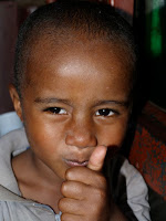Après s'être renseigné dans le village, Robin nous conduit vers la maison de l'"ancienne" où une ribambelle d'enfants très jeunes nous accueillent tout excités en nous touchant, nous encerclant, nous inondant de rires pleins de dents noircies...