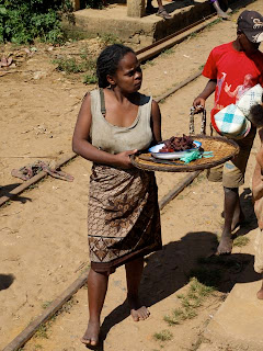 Les gens sont spontanés et curieux, les bébés finissent leur nuit bien emmitouflés sur le dos de leur maman, la tête tantôt à droite, tantôt à gauche, les adultes ont la candeur des enfants, le sourire charmant, il n'y a pas de guide pour vous vendre un circuit, pas de tarif vazaha, beaucoup de gentillesse et de simplicité. Nous serions volontiers restés quelques jours à Ihosy, mais le train de Fianarantsoa ne nous attendra pas...